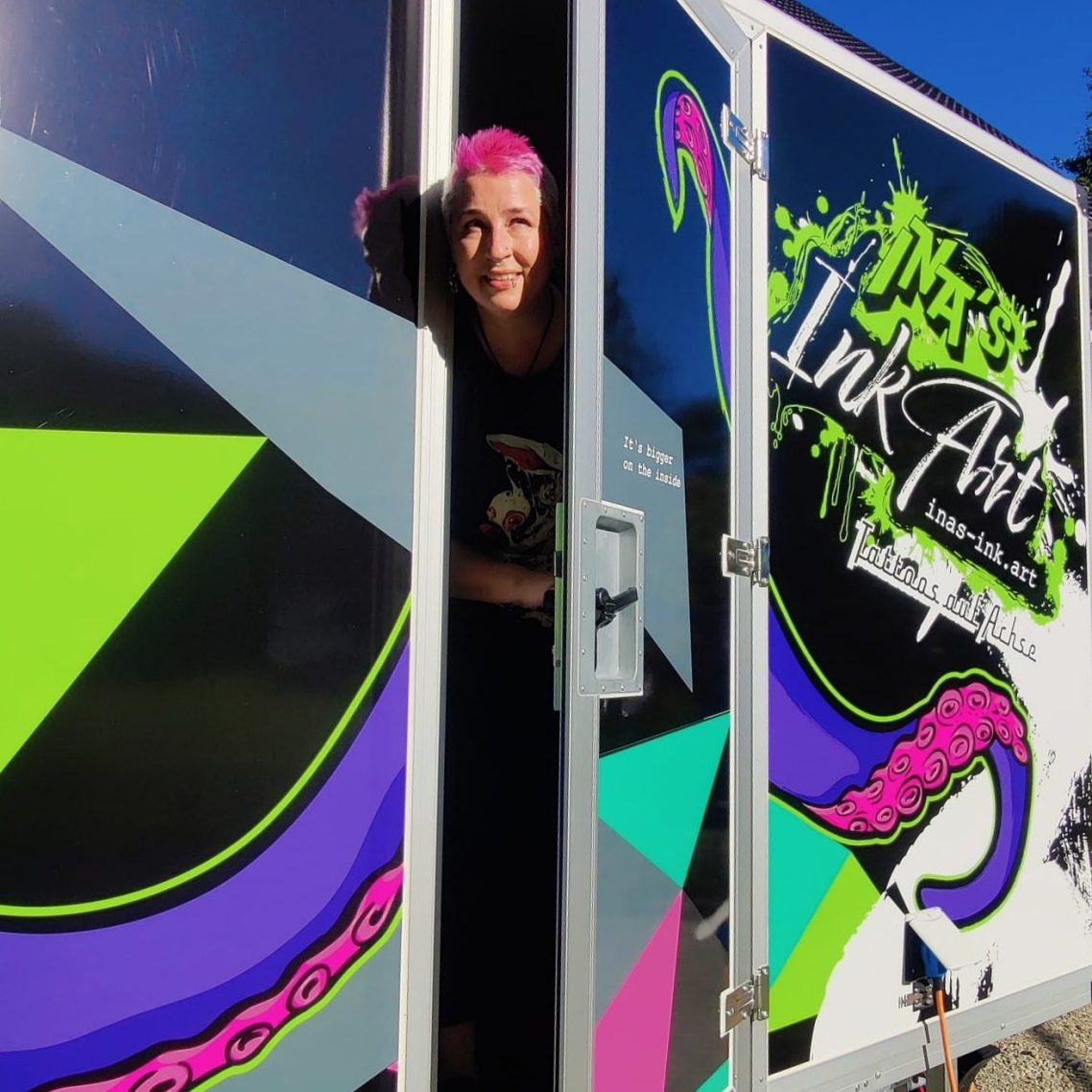 Mein Tattoo-Studio ist flexibel und beweglich. Wenn du nicht mobil bist oder einfach lieber in deiner Umgebung bleibst, komme ich mit dem Tattooanhänger in deine Straße. Dabei musst du auf nichts verzichten: alle Hygiene-Vorschriften werden eingehalten und du genießt alle Bequemlichkeiten wie bei mir vor Ort. Der InkArt-Anhänger ist ein komplettes Tattoostudio auf Rädern.